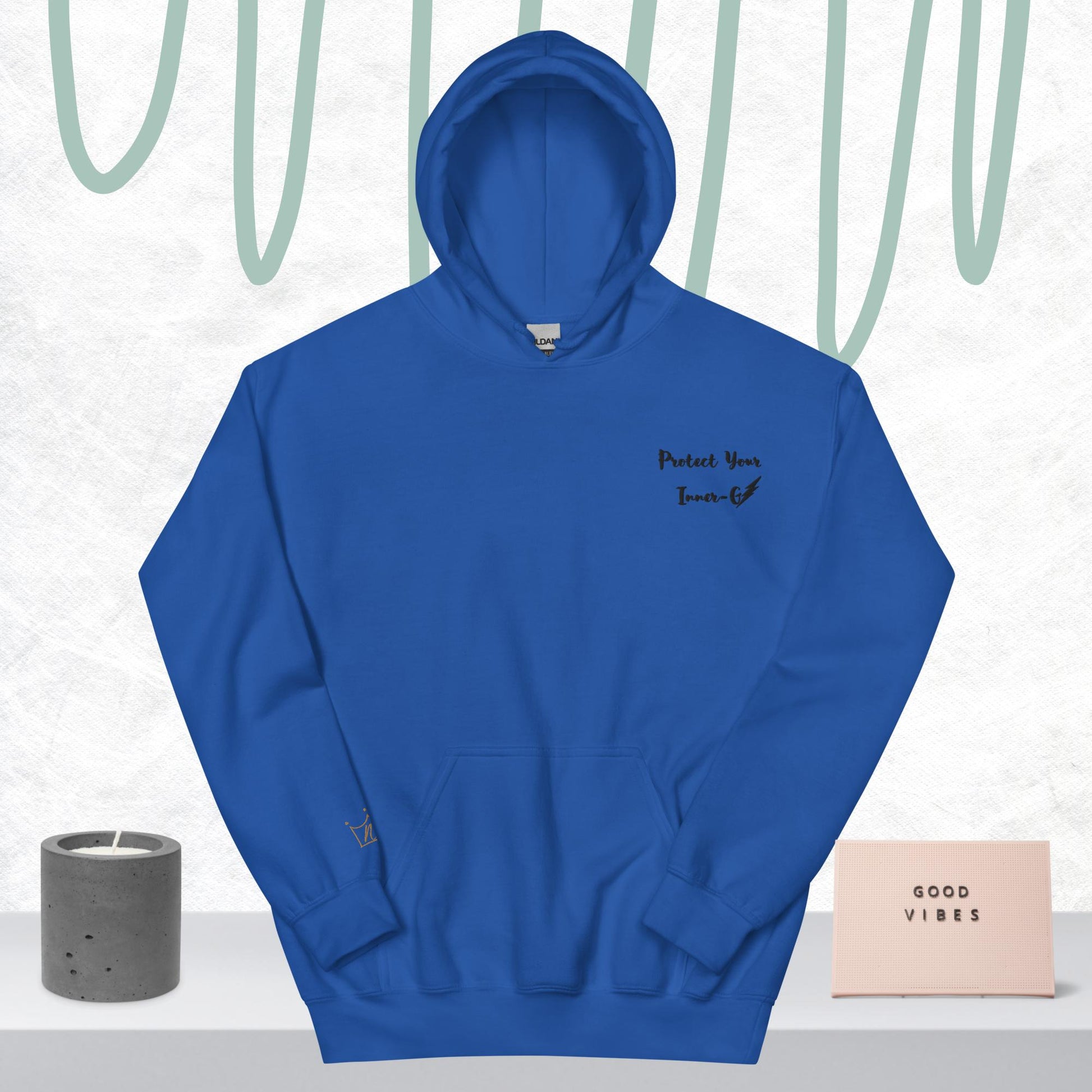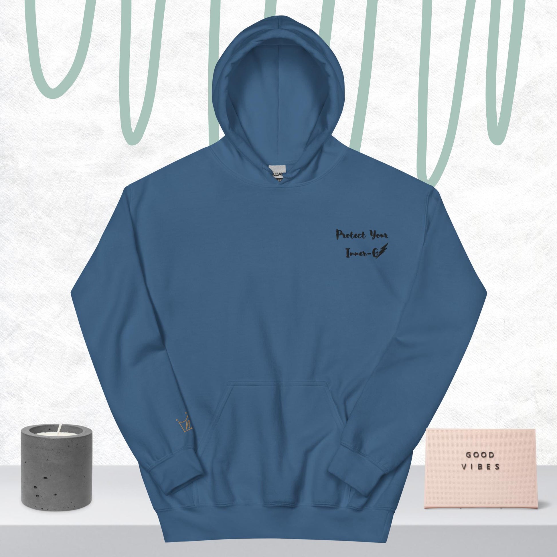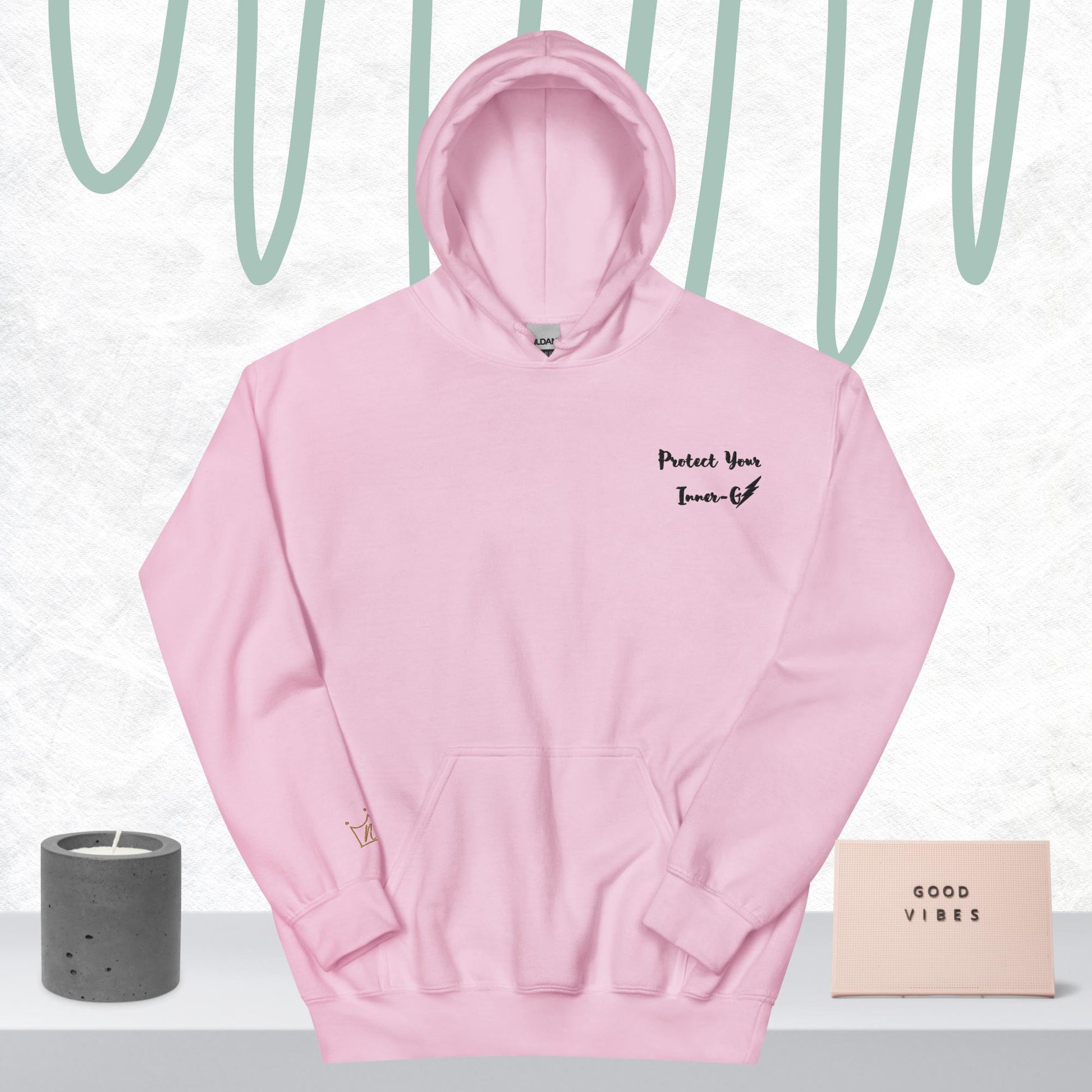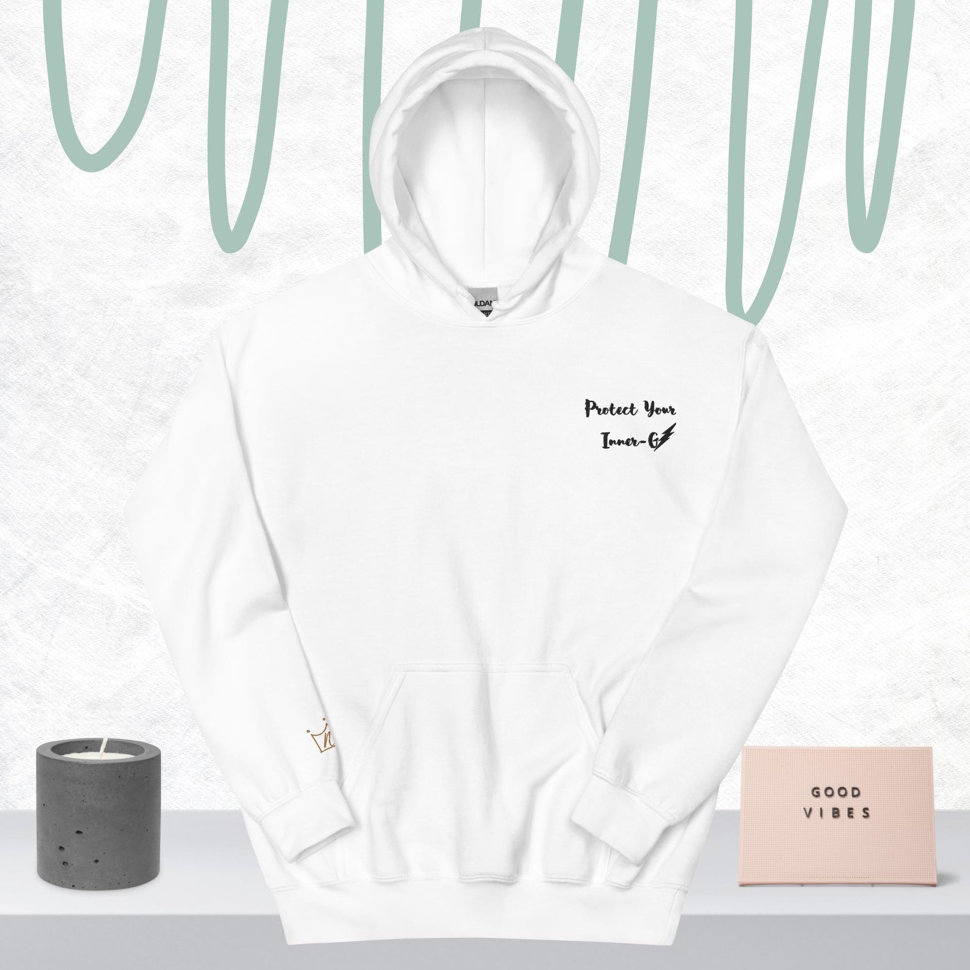 Step into the cold with confidence & purpose, wrapped in our "Protect Your Inner-G" Hoodie. It's not just outerwear; it's a symbol of your commitment to protect your energy, find inner peace & stay shielded from the chill of life's challenges.