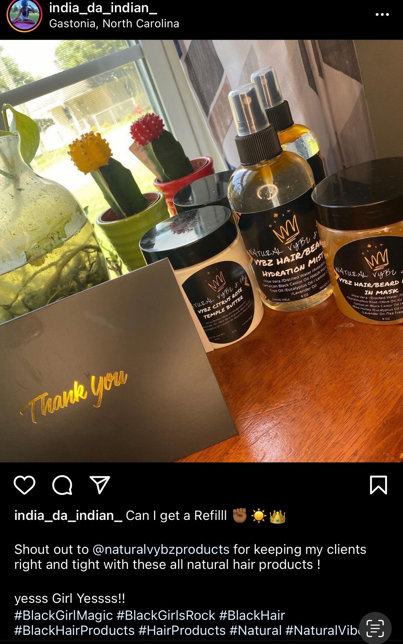 After washing with Vybz Conditioning Shampoo spray hair/beard with the Hydration Mist & then apply Vybz Deep Conditioning Leave in Mask as detangler or to style, activate waves, get curls popping or simply to deeply condition hair/beard while thinking positive thoughts/affirmations.